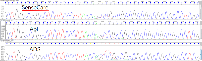 以上對比ABI、SenseCare、ADS三家BigDye試劑進(jìn)行了測序比較: