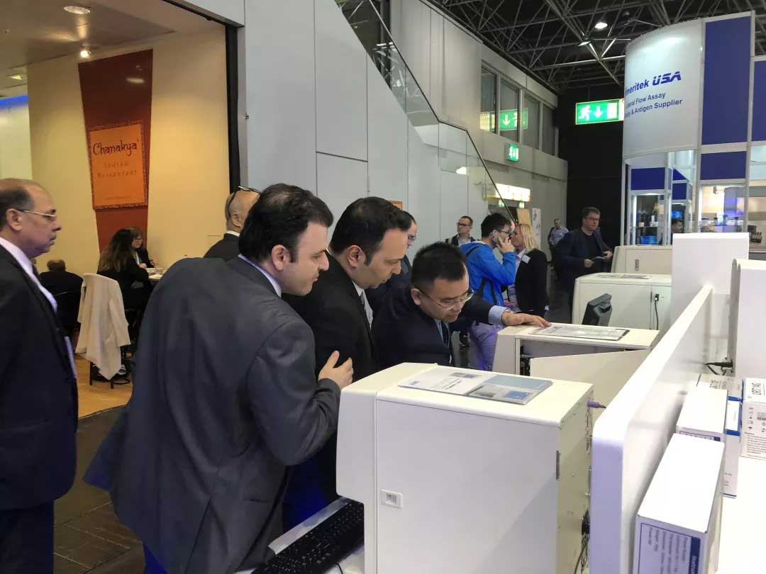 展會上,首次亮相歐洲舞臺的US-2000系列模塊化全自動尿液分析流水線,作為尿液分析與人工智能識別技術相融合的全新突破,將尿液有形成分分析速度提升到240測試/小時,完美解決歐美高端市場集中化實驗室大批量樣本的處理效率問題。展會第一天就有德國,意大利,以色列等國的經銷商赴約洽談合作。